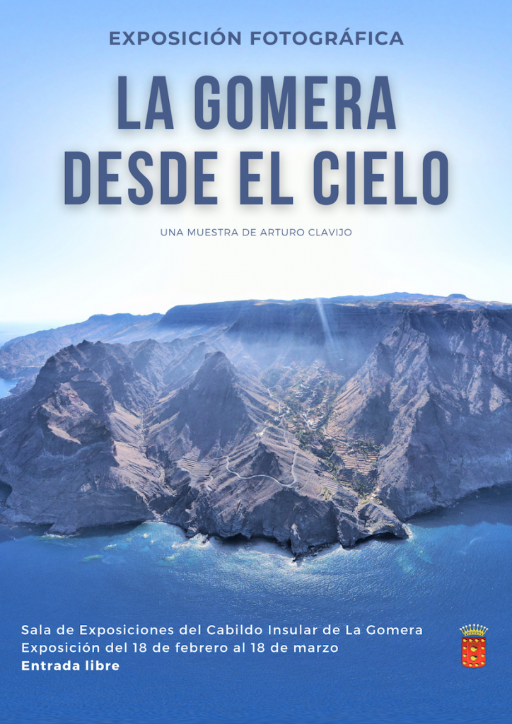 El Cabildo de La Gomera acoge, desde este viernes, 18 de febrero, a partir de las 12.00 horas, la exposición fotográfica ‘La Gomera desde el cielo’, de Arturo Clavijo. Se trata de una muestra compuesta por 60 imágenes que inmortalizan el litoral gomero a través del uso de un dron. La exposición podrá visitarse hasta el 18 de marzo, en la Sala de Exposiciones de la Institución insular.
