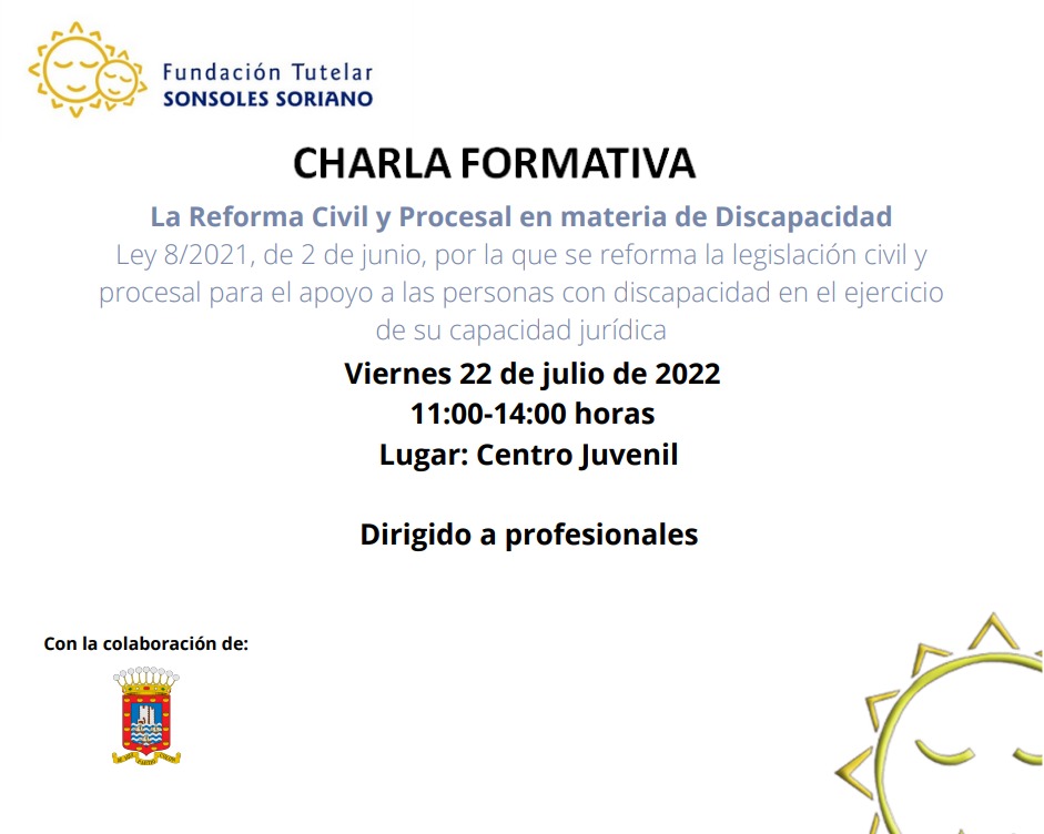 La charla estará dirigida a técnicos y profesionales. Será impartida por la Fundación Tutelar Sonsoles Soriano, con la colaboración del Consistorio capitalino
