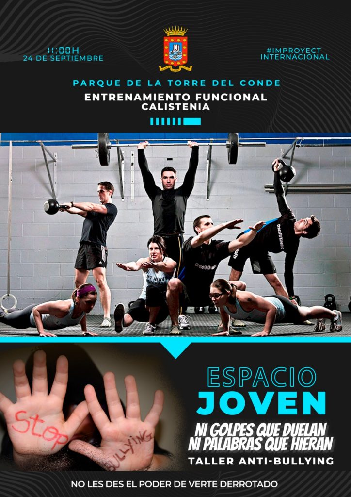 El próximo sábado, 24 de septiembre, en el Parque de la Torre del Conde, a las 11:00 horas, se llevará a cabo un taller anti – bullying y un entrenamiento funcional calistenia