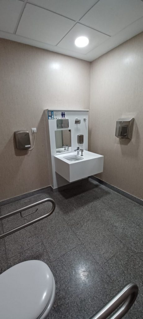 • Este aseo se ha instalado en un baño ya existente ubicado en la primera planta del centro hospitalario, en la zona de Consultas Médicas