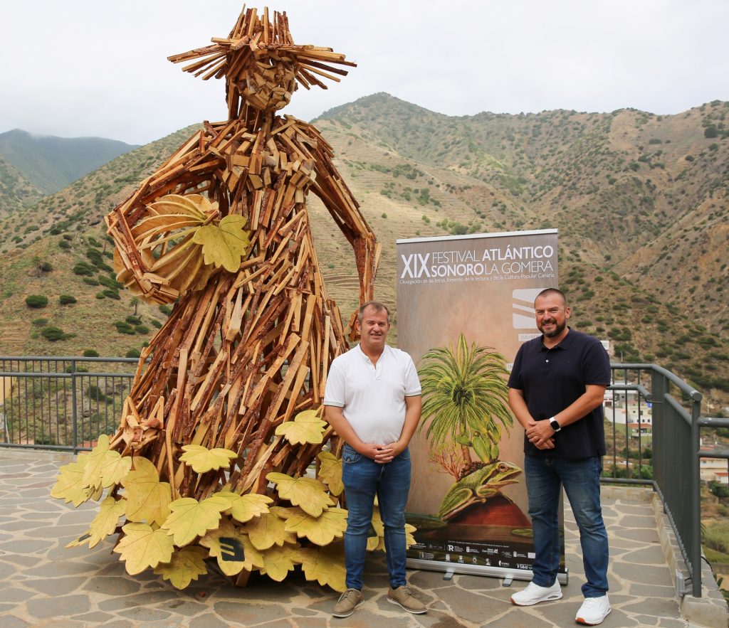 Música, conferencias y talleres se aúnan para dialogar sobre cultura y ruralidad en la XIX edición del Festival Atlántico Sonoro, uno de los más estables y sólidos del Archipiélago, en el que la diversidad y el medioambiente han estado también muy presentes. El programa de este 2023, que se desarrollará en La Gomera, Tenerife y Lanzarote se ha presentado hoy, lunes 3 de julio, en el mirador del Almendrillo, en Vallehermoso, con la presencia del alcalde de este municipio gomero, Emiliano Coello, y el director del Festival, Carlos Prieto. Los asistentes han podido también disfrutar de la escultura de madera, que el artista Luigi Stinga, que se ha convertido ya en un clásico del Festival, ha elaborado para esta ocasión, un homenaje a la Mujer campesina de Vallehermoso.
