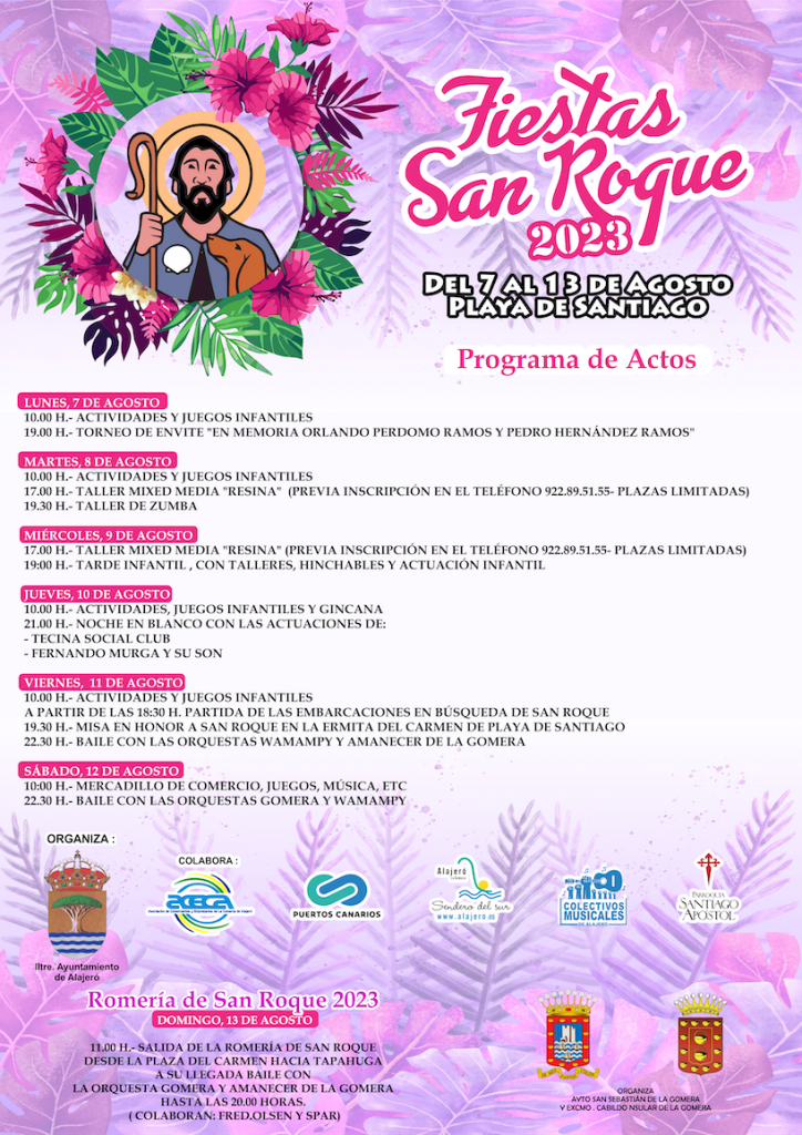 Ya llega una de las fiestas más esperadas del verano en La Gomera, las de San Roque en Playa de Santiago cuyo programa dará comienzo este mismo día 7 de agosto y que se prolonga hasta el próximo domingo, 13 de agosto.