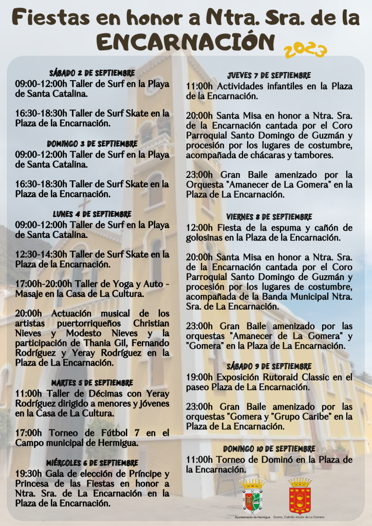 El Ayuntamiento de Hermigua ha presentado hoy el programa de actos y actividades que se desarrollarán durante las siguientes semanas en el municipio, con motivo de las Fiestas en honor a Ntra. Sra. de la Encarnación.