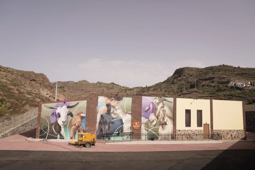 Además de la realización de trabajos para la recuperación paisajística en la zanja abierta anexa al edificio, la mejora de los accesos exteriores, y la personalización del edificio con el pintado de un mural en la fachada.
