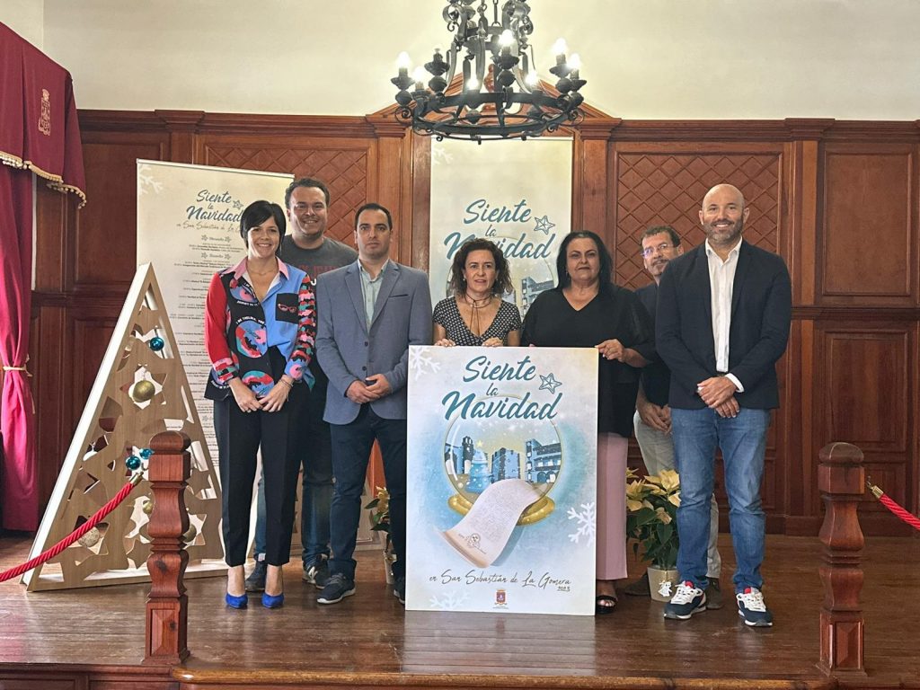 El Salón de Plenos del Ayuntamiento de San Sebastián de La Gomera acogió el acto de presentación de su programa para las fiestas navideñas y Reyes bajo el lema “Siente la Navidad”. Una programación que cuenta, de forma paralela, con la campaña de dinamización comercial “Elige San Sebastián para comprar en Navidad”.