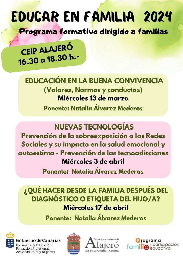 El programa formativo ‘Educar en Familia 2024’ dará comienzo el próximo miércoles, 13 de marzo con la primera ponencia de las tres que están previstas llevar a cabo hasta el próximo miércoles, 17 de abril.