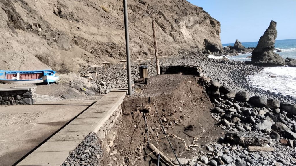 El Jefe del Servicio de la Demarcación y los Técnicos de desplazaron a La Caleta el pasado 5 de Marzo para hacer una valoración de las obras a ejecutar; sin embargo, apenas 10 días después, nos encontramos con un panorama realmente alarmante, preocupante y desolador ya que prácticamente solo queda la plataforma que sostiene la plaza y la ermita, lamenta.