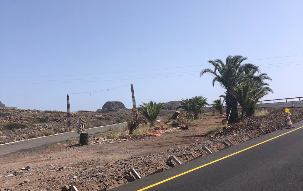 El Consistorio recuerda que «debido a las obras que se ejecutan en esta importante vía insular se han tenido que trasladar ejemplares de palmeras que impedían ensanches de la vía a otros lugares de la misma localidad y próximos a este mismo trayecto».
