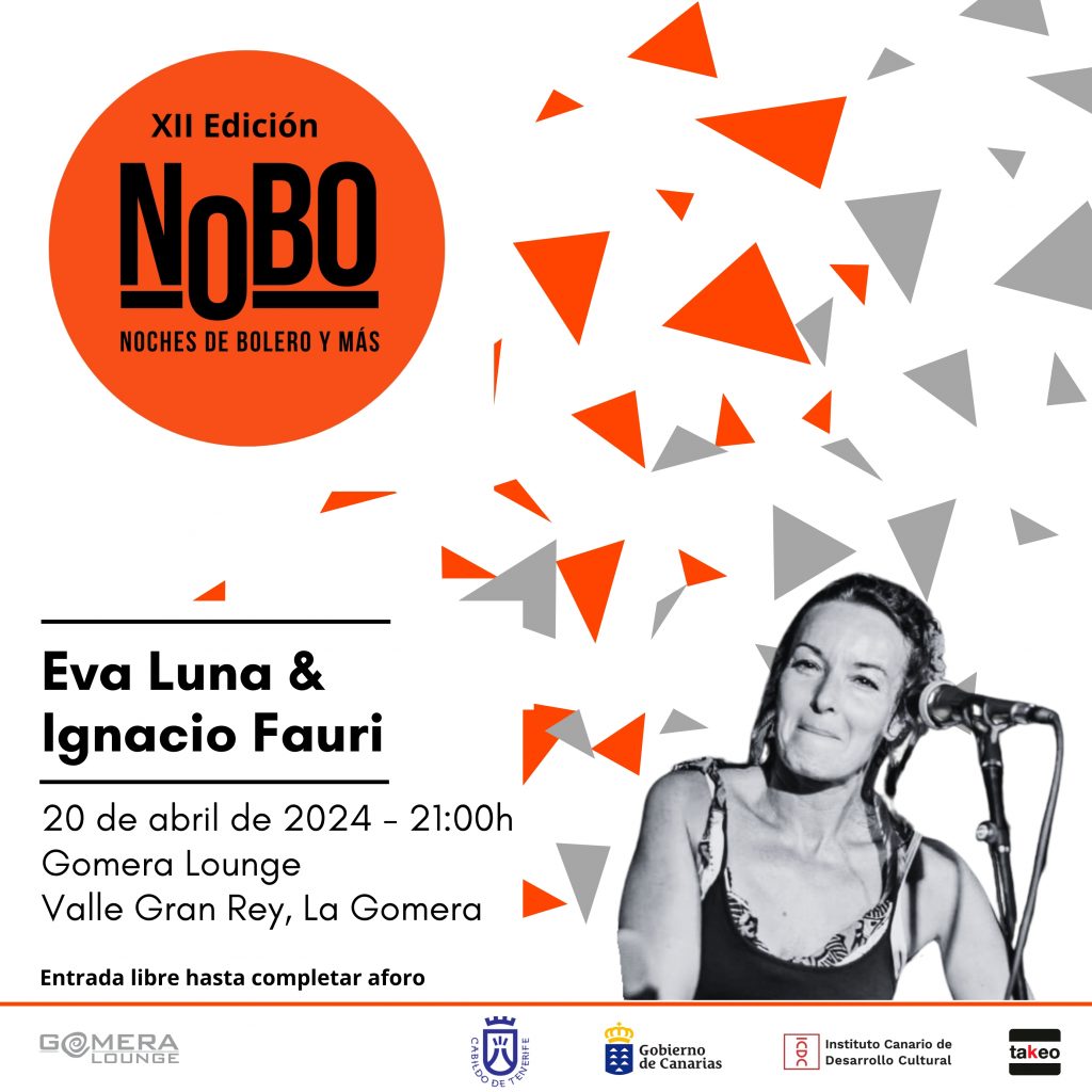 La XII edición de ‘Noches de Bolero y más’ (NOBO) recalará el próximo sábado, 20 de abril, en la isla de La Gomera. En concreto, lo hará en Gomera Lounge, en Valle Gran Rey, con la actuación de la cantante Eva Luna y el pianista Ignacio Fauri.