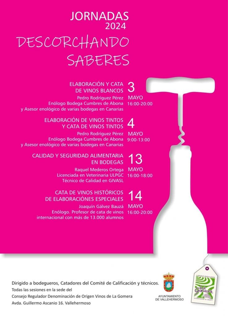 `Descorchando saberes’ es el título de las jornadas formativas para el sector vitivinícola que se están desarrollando en el municipio de Vallehermoso desde el pasado día 3 de mayo y que están organizadas por el Consejo Regulador en colaboración con el Ayuntamiento. Unas acciones que están teniendo lugar en la sede del Consejo hasta el próximo 14 de mayo y que cuentan con la participación activa de referentes en el sector de la elaboración y cata de vinos de la Comunidad Autónoma.
