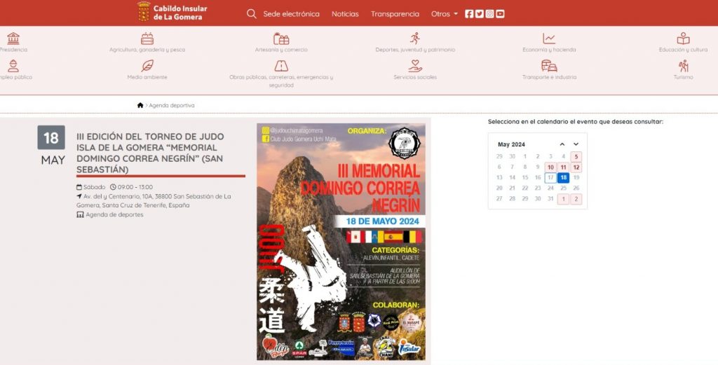 La Gomera acogerá este sábado, 18 de mayo, la III edición del torneo de judo Isla de La Gomera ‘Memorial Domingo Correa Negrín’, en el Audillón de San Sebastián de La Gomera, y con la participación de con la participación de más de 200 deportistas de Tenerife, Gran Canaria, La Gomera y Bélgica, que compiten en las categorías alevín, infantil y cadete.