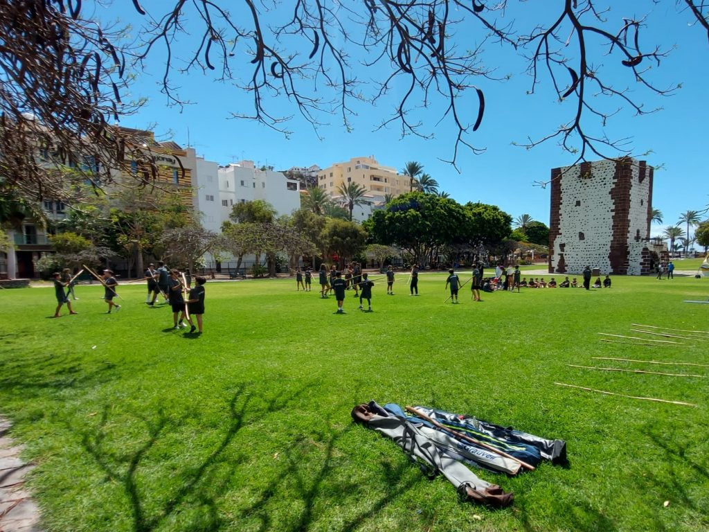 La jornada, que involucró a toda la comunidad educativa de la isla en torno a estos dos deportes vernáculos, comenzó con una demostración, en la plaza Torre del Conde de la capital gomera, de lucha del garrote canario a cargo de un grupo de estudiantes locales, quienes han sido instruidos a lo largo de los últimos días por varios monitores de la Federación Canaria de Lucha del Garrote Canario, ante la atenta mirada de escolares llegados de todos los puntos de la isla.