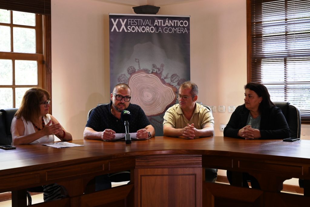 El Festival Atlántico Sonoro, uno de los más sólidos y estables del Archipiélago, ha presentado su vigésima edición, en la mañana de hoy, viernes 12 de julio, en el Ayuntamiento de Vallehermoso, en La Gomera. En el acto han estado presentes el alcalde de este municipio gomero, Emiliano Coello Cabrera, junto a la concejala de Cultura, Festejos y Desarrollo Local, Estrella del Carmen Morales Medina; la consejera de Servicios Sociales, Cultura y Educación del Cabildo Insular de La Gomera, Rosa Elena García Meneses; y el director del Festival Atlántico Sonoro, Carlos Prieto González.