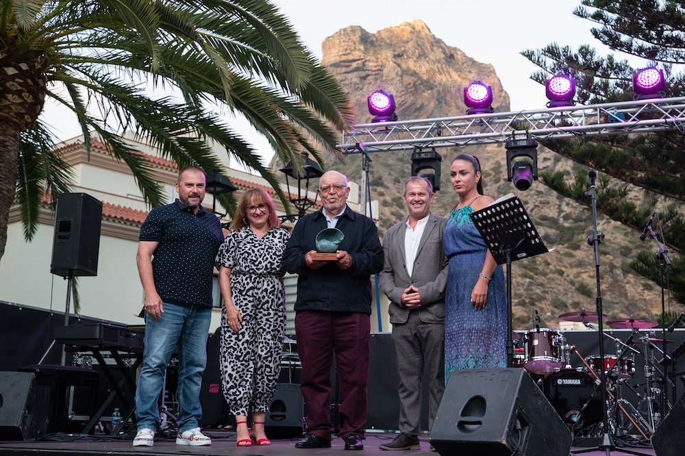 El Festival Atlántico Sonoro ha clausurado su vigésimo aniversario, con uno de los actos más emotivos de la programación de este año: la entrega del Premio a la labor en favor de la divulgación y conservación de la cultura popular canaria, a Isidro Ortiz Mendoza quien, a sus más de noventa años, continúa defendiendo el romance, los instrumentos tradicionales y el silbo gomero. El alcalde de Vallehermoso, Emiliano Coello, la consejera de Servicios Sociales, Cultura y Educación del Cabildo Insular de La Gomera, Rosa Elena García Meneses; la presidenta de la Asociación Cultural Silbo Gomero, Estefanía Venus Mendoza; y el director del Festival, Carlos Prieto, hicieron entrega del galardón al que es considerado como uno de los mejores artesanos en la construcción de chácaras y mantenedor de la lengua silbada, este pasado sábado, 20 de julio, en la Plaza de la Constitución de Vallehermoso, en La Gomera.