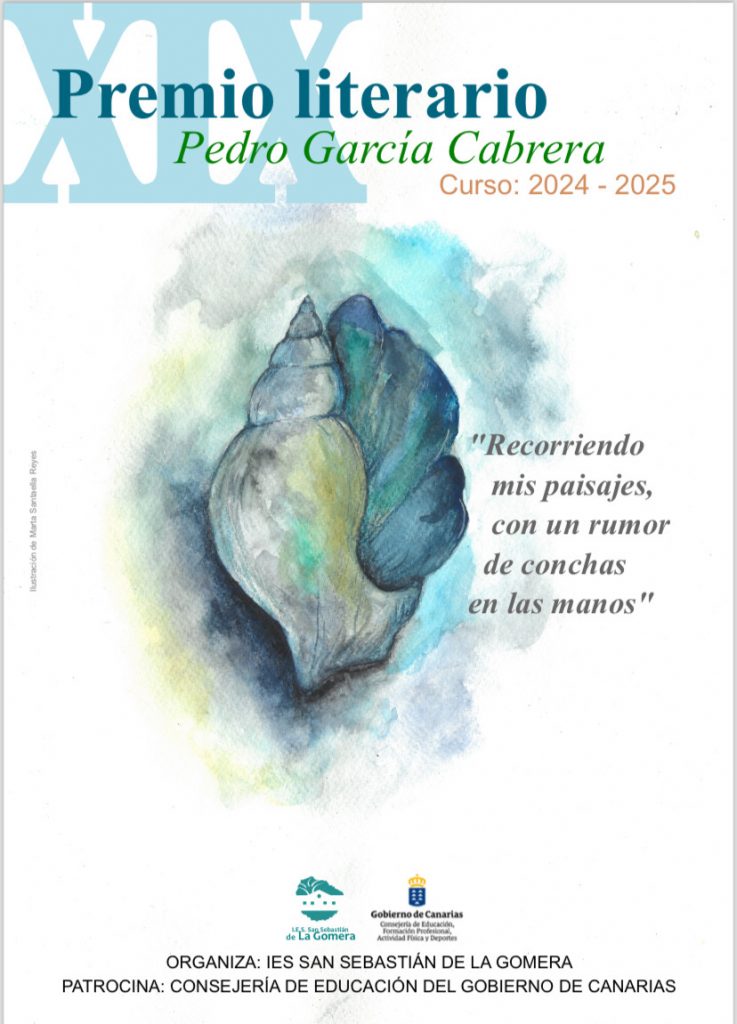 El cartel que promociona el XIX Premio literario Pedro García Cabrera tiene el sello del alumnado ya que la alumna Marta Santaella Reyes, de la modalidad de Artes de 1º de Bachillerato, ha sido la encargada de realizar la ilustración. A través de los versos del poeta gomero “Recorriendo mis paisajes, con un rumor de conchas en las manos”, se ilustra el deseo de encontrar el amor por parte del yo poético en el poemario Hombros de ausencia. Con esos metros, el poeta le cede la palabra al alumnado de toda Canarias para que participen en el Premio literario que lleva su nombre y que es el único en Canarias que organiza un Centro educativo para todos los estudiantes de las islas.