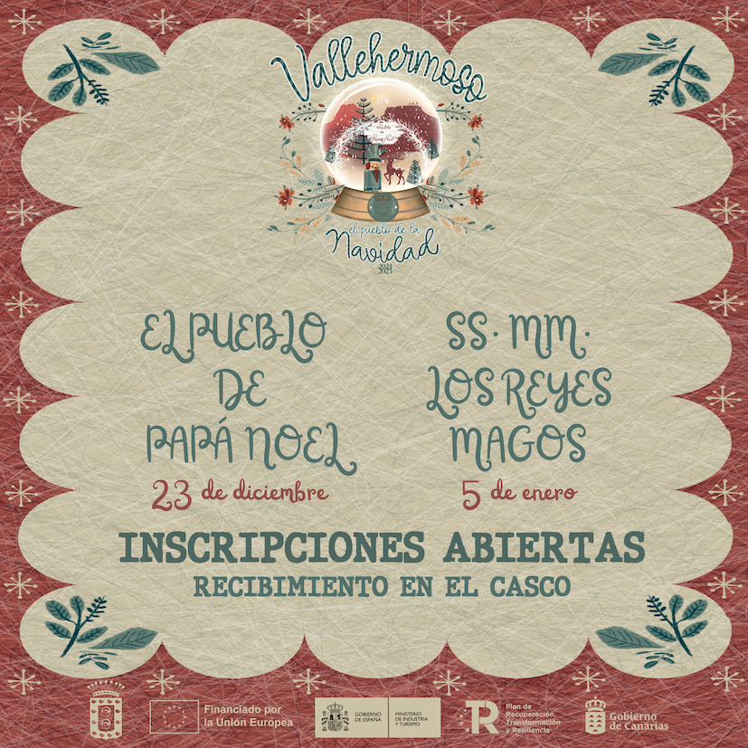 Por otro lado, el próximo 5 de enero, serán SSMM los Reyes Magos quienes visiten Vallehermoso y los más pequeños del municipio podrán recibirlos como se merecen en la plaza de la Constitución, todo ello previa inscripción en el enlace https://forms.gle/wuUQ5aUGrEHgeo9w9, con el fin de gestionar todos los pormenores para que esta visita sea mágica.