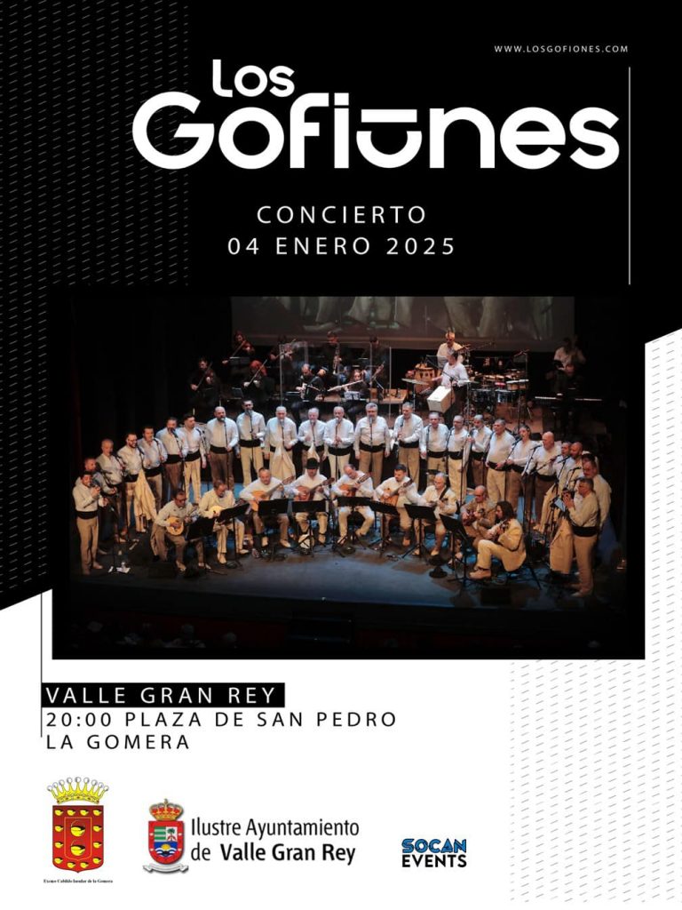 La Plaza de San Pedro, en Valle Gran Rey, acoge este sábado, 4 de enero, el concierto de Los Gofiones. Un evento que comenzará a partir de las 20:00 horas y que se incluye dentro de la programación con motivo de la celebración del Centenario de la llegada de la Imagen de la Virgen de Los Reyes.