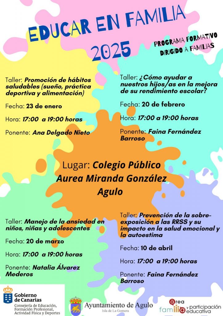 Desde el Ayuntamiento de Agulo se invita a todas las familias interesadas a participar en este programa formativo, que brinda una valiosa oportunidad para aprender, reflexionar y compartir experiencias sobre los temas que más preocupan en el ámbito educativo y familiar.