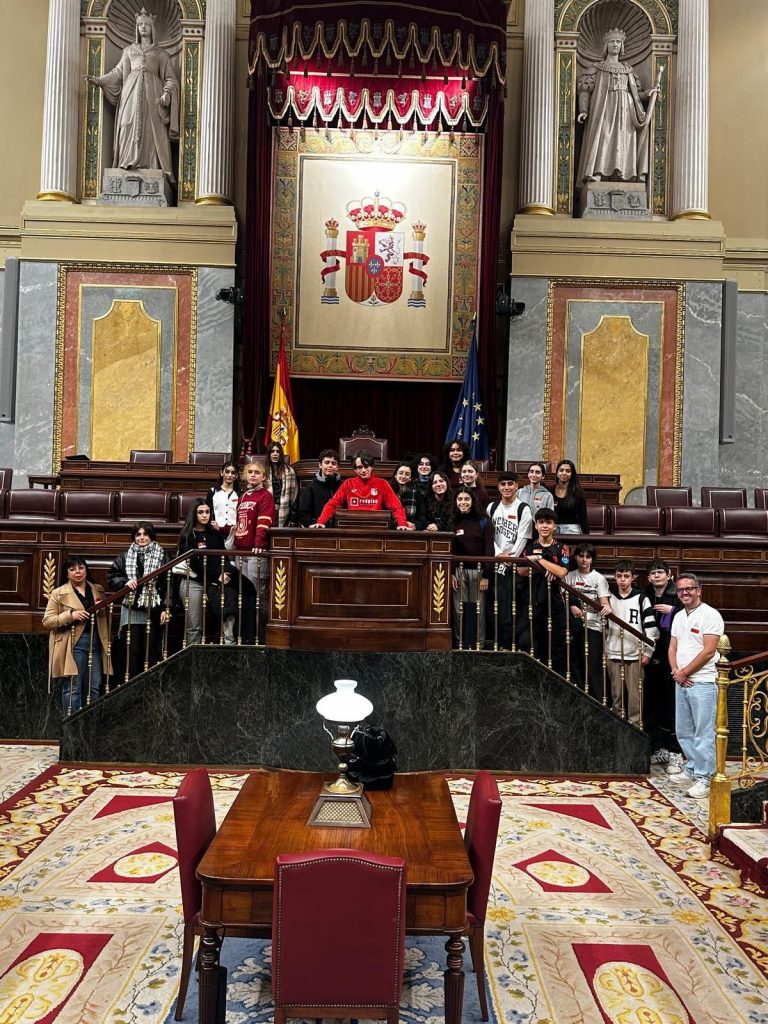 Durante la jornada del miércoles, el alumnado de La Gomera junto con sus anfitriones de Madrid, tuvieron la oportunidad de disfrutar de un encuentro con las diputadas canarias Esther Rodríguez y Ada Santana, representantes de ambas provincias, en el Congreso de los Diputados. Ahí visitaron estancias patrimoniales de gran interés histórico y descubrieron entresijos de la actividad parlamentaria así como solventaron sus dudas y curiosidades sobre la vida política nacional. El IES hace extensivo su agradecimiento al Congreso y a las diputadas por su cercanía con el alumnado. Gracias a esta visita, por primera vez en el Congreso se escuchó el Silbo gomero por parte de uno de los alumnos participantes: Moisés Hernández.