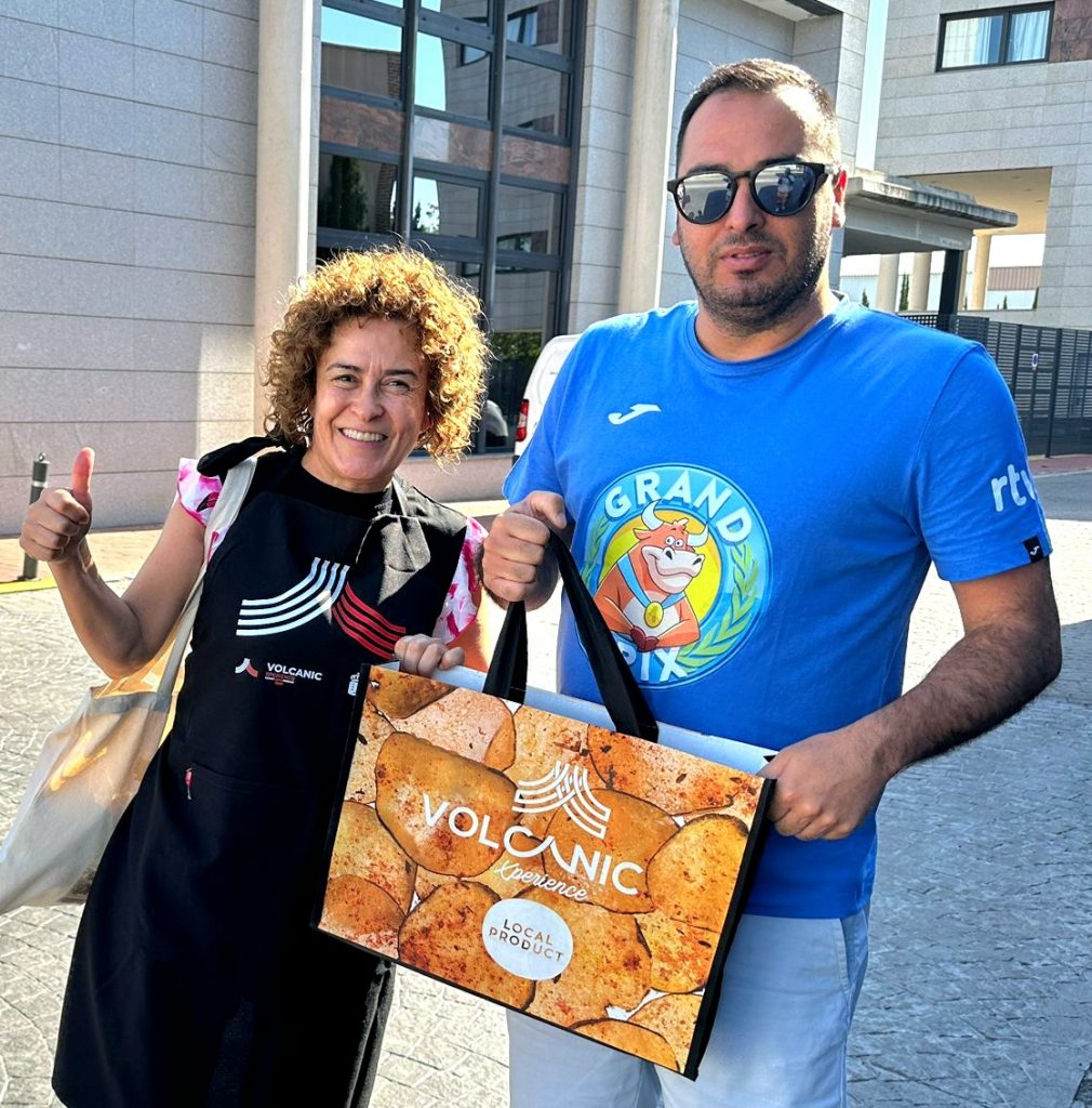 El Gobierno de Canarias, a través de su marca Volcanic Xperience de GMR Canarias, mostró un apoyo sin fisuras al equipo gomero y se encargó de llevar el sabor de nuestras islas a Madrid con la entrega de una muestra de productos de la gastronomía canaria a Sergio García-Navas Corrales, alcalde de Herencia, a Ramón García, Lalachus, Ángela Fernández y al equipo del Grand Prix del Verano.