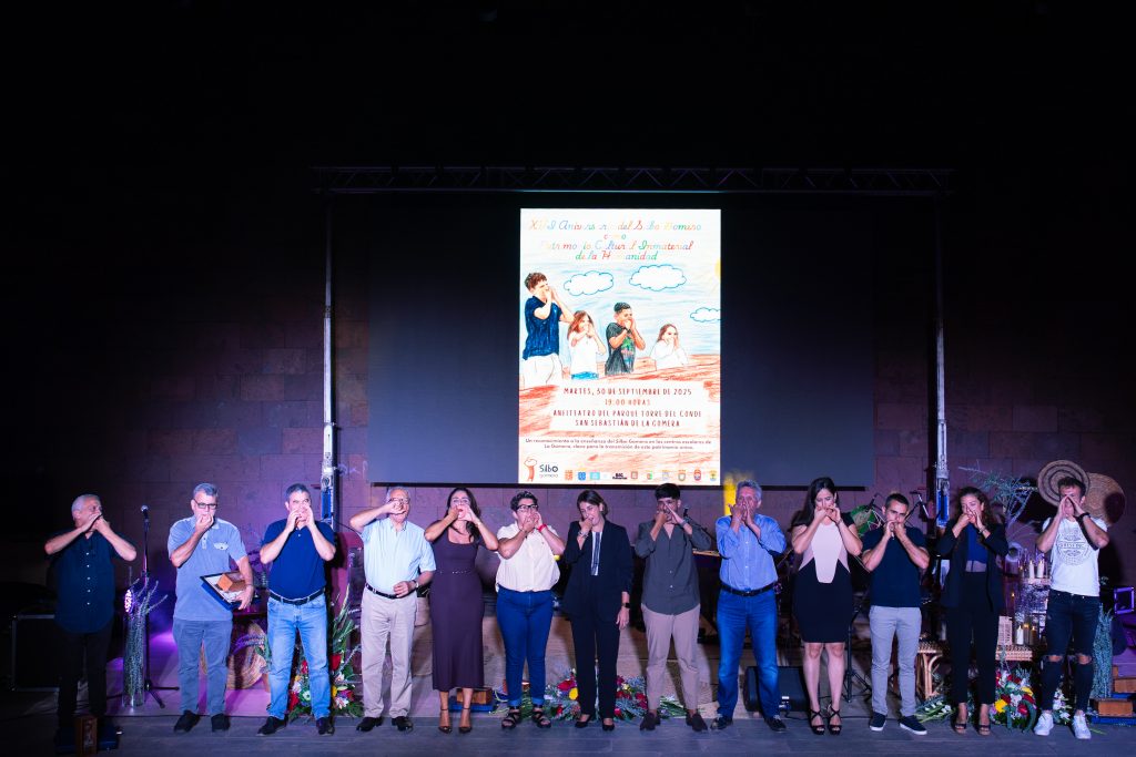 El acto celebrado en el Anfiteatro de la Torre del Conde con motivo del decimosexto aniversario de la declaración del Silbo Gomero como Patrimonio de la Humanidad rindió homenaje a quienes han impulsado su enseñanza en las aulas