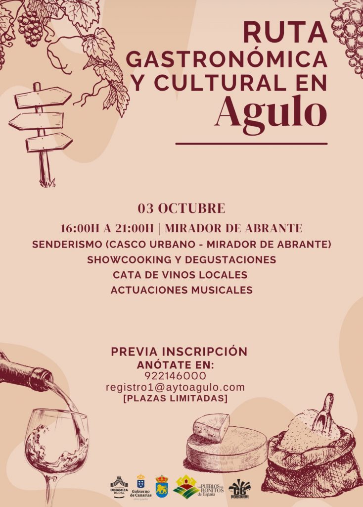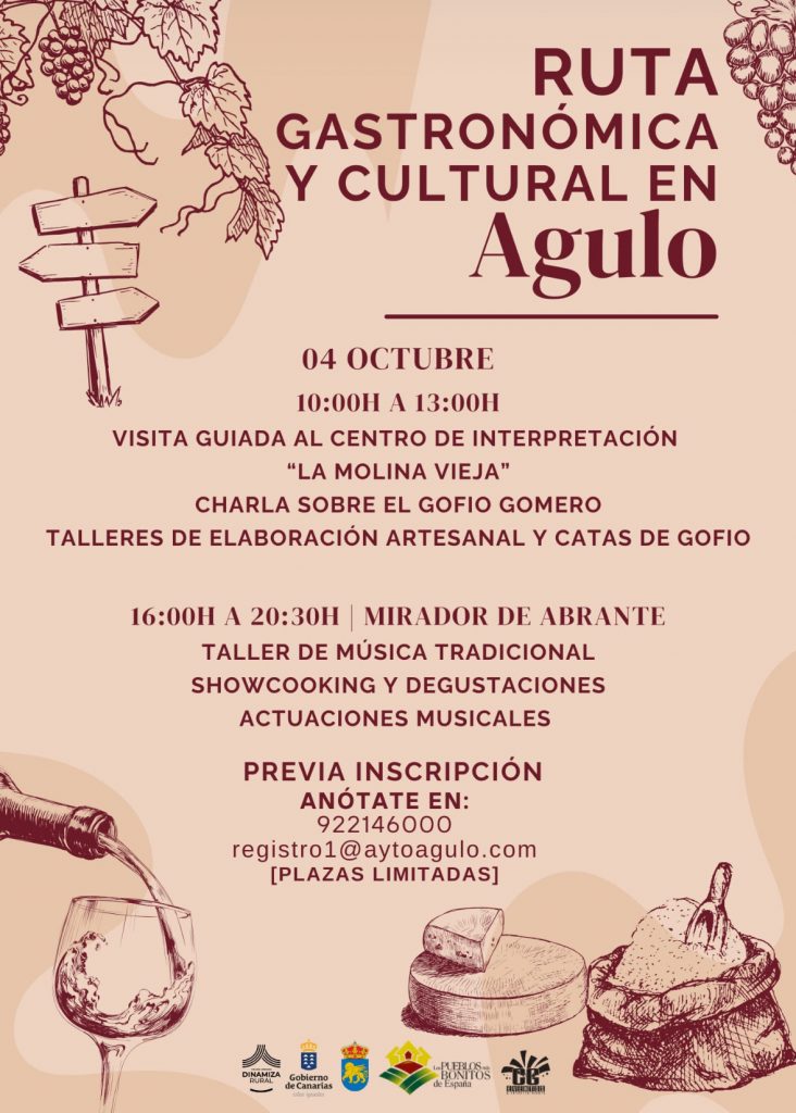 El municipio de Agulo celebrará los próximos 3 y 4 de octubre una Ruta Gastronómica y Cultural enmarcada dentro de la estrategia “Dinamiza Rural”, impulsada por el Gobierno de Canarias con la colaboración de GMR Canarias, y cuyo objetivo es revitalizar los municipios rurales con menos de 10.000 habitantes a través de la puesta en valor del sector primario, la cultura local y un turismo responsable y sostenible.
