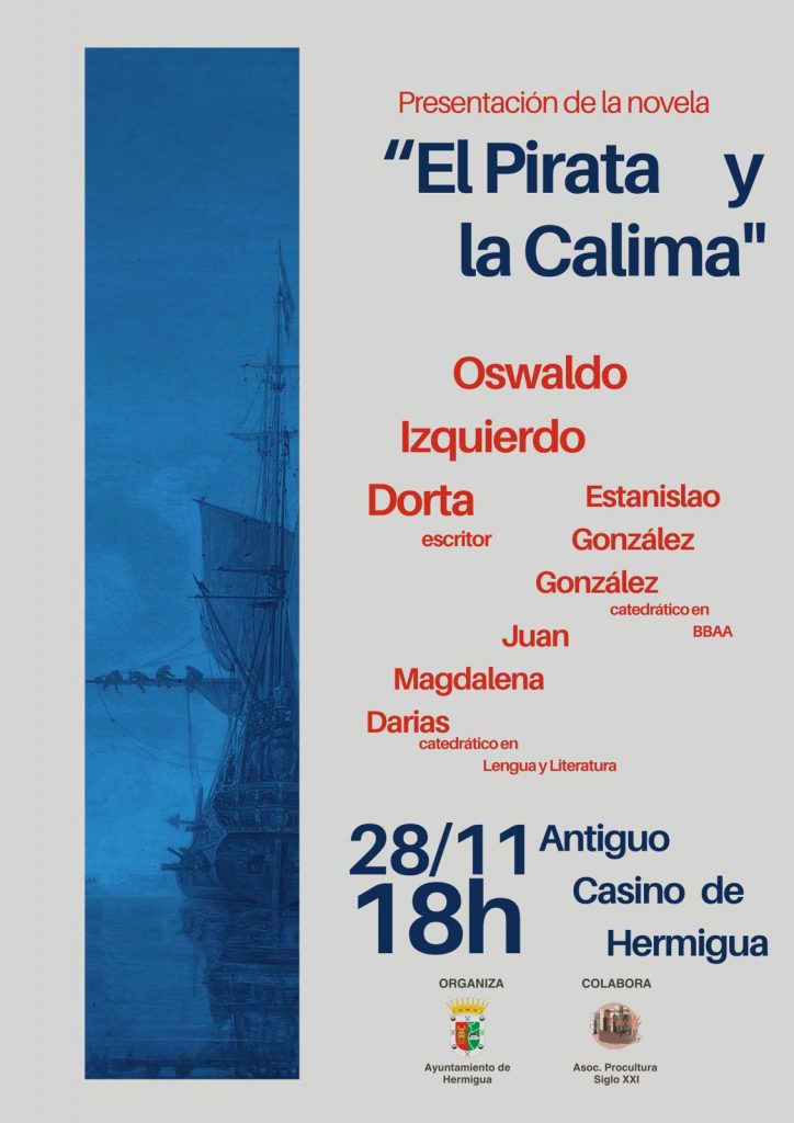 La presentación de esta novela de ficción y aventura, inspirada en el acoso que las naves españolas procedentes de América sufrieron por parte de naves europeas y norteafricanas durante el siglo XVI, tendrá lugar en el Antiguo Casino de Hermigua, el próximo viernes 28 de noviembre, a las seis de la tarde y estará a cargo de Estanislao González y González, doctor en Bellas Artes, catedrático, escritor e investigador en Historia y en Etnografía, Juan Magdalena Darias, catedrático de Lengua y Literatura y el propio autor, Oswaldo Izquierdo Dorta, Catedrático de Lengua y Literatura Española, docente y escritor.