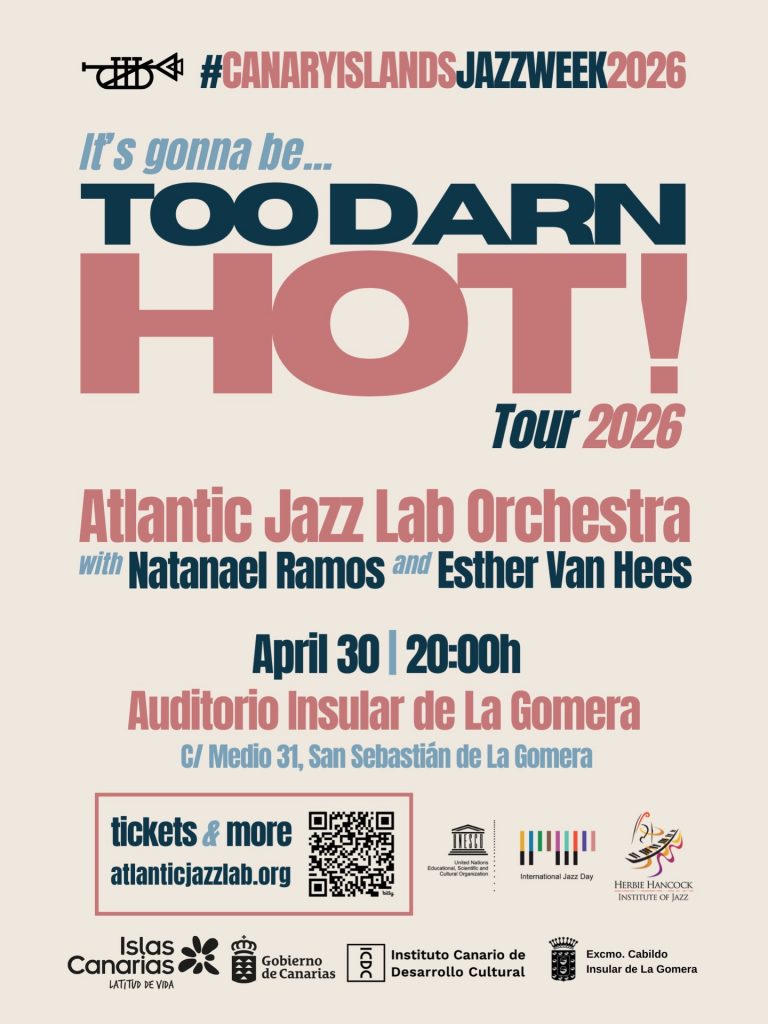 El Auditorio Insular de La Gomera acoge, este jueves, 30 de abril, a las 20:00 horas, el inicio del ‘Too Darn Hot! Tour’, la puesta de largo del nuevo trabajo discográfico de la Atlantic Jazz Lab Orchestra,  grabado en directo en la misma isla bajo el prestigioso sello holandés Teles Music.