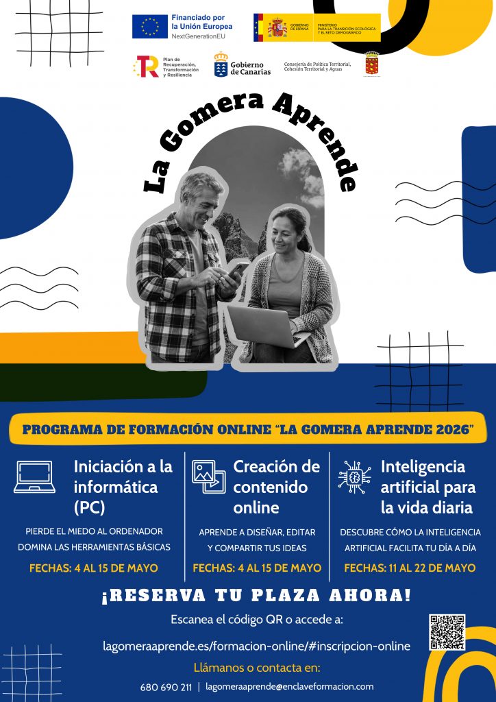 El Cabildo de La Gomera abre el periodo de inscripción para cursar nuevas formaciones del programa ‘La Gomera Aprende’, una iniciativa promovida por la Institución insular financiada por la Unión Europea a través de los fondos NextGenerationEU.