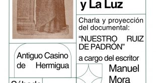 El próximo sábado 21 de octubre, a las 18:30 horas, en el Antiguo Casino de Hermigua, tendrá lugar la proyección de la película “Nuestro Ruiz de Padrón” (30 minutos de duración) y la charla titulada “Ruiz de Padrón: la luz y la palabra”, impartida por el escritor y cineasta Manuel Mora Morales. Antonio Ruiz de Padrón ha sido el gomero …