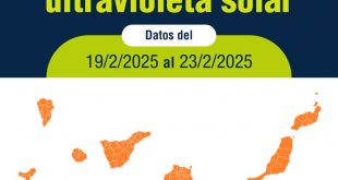 La Dirección General de Salud Pública recuerda a la población que debe protegerse del sol todo el año, incluso en días nublados, usando diariamente un filtro solar con factor de protección solar (SPF) 30 o más, sombrero de ala ancha y gafas de sol Canarias es la región de España de más alta radiación ultravioleta durante todo el año, según …