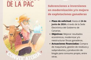 LeerLos ganaderos canarios disponen hasta el 24 de junio para solicitar las subvenciones del PEPAC a la modernización de explotaciones