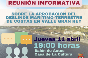 LeerEl Ayuntamiento de Valle Gran Rey convoca una reunión informativa sobre el deslinde marítimo-terrestre de Costas