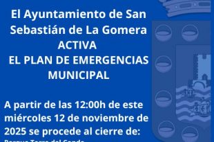 El Ayuntamiento de San Sebastián de La Gomera activa el Plan de Emergencia Municipal a partir de las 12:00 horas …