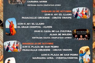 Este sábado, 15 de octubre, en el Anfiteatro del Parque de la Torre del Conde, a las 11:30 horas, se …