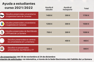 La Institución insular destina 800 mil euros a cooperar con los estudiantes gomeros que cursan enseñanzas universitarias, Bachillerato y Formación …