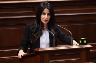 La presidenta del Grupo Parlamentario Agrupación Socialista Gomera, Melodie Mendoza, destaca, ante el Pleno del Parlamento de Canarias, la necesidad …