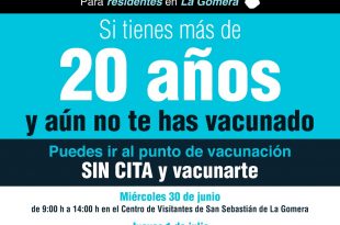 LeerLos residentes en La Gomera mayores de 20 años que no han recibido la vacuna podrán vacunarse sin cita este miércoles y jueves
