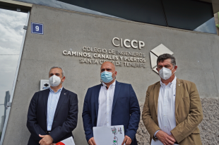 El consejero delegado de la entidad pública, Agoney Piñero, y los decanos de las demarcaciones de Las Palmas y de …