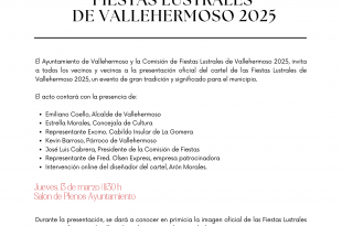 LeerPresentación oficial del cartel de las Fiestas Lustrales de Vallehermoso