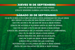 El jueves 18 y el sábado 20 de septiembre, días clave para la realización de las distancias de la prueba, …
