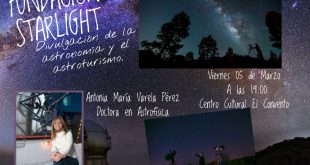 La Asociación Procultura Siglo XXI organizará este viernes 5 de marzo un acto en el que la doctora en Astrofísica y actual directora gerente de la Fundación Starlight, Antonia María Varela Pérez, hablará sobre la esta fundación, sus objetivos, la divulgación de la astronomía, certificaciones Starlight y astroturismo. La “Declaración Starlight”, o de La Palma, fue promovida en el año …