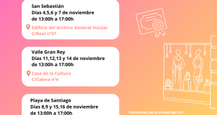 La formación, de carácter gratuito, se desarrollará en sesiones presenciales en San Sebastián, Valle Gran Rey y Playa de Santiago, dirigidas a establecimientos comerciales Estas sesiones están diseñadas para proporcionar herramientas y técnicas prácticas que ayudarán a potenciar la imagen del negocio El Cabildo de La Gomera y la delegación de la Cámara de Comercio de Santa Cruz de Tenerife …