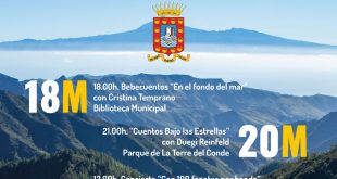 Se trata de una agenda cultural que se extenderá desde el 18 al 30 de mayo y abarcará la celebración de espectáculos de narración oral, conciertos y una presentación musical a cargo del grupo del taller de música para mayores del municipio El Ayuntamiento de San Sebastián de La Gomera desde la Concejalía de Cultura y Festejos, presenta el programa …