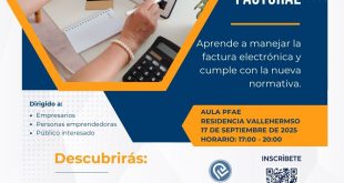 El municipio refuerza la digitalización del tejido económico local con una jornada práctica dirigida a empresas autónomos y personas emprendedoras El Ayuntamiento de Vallehermoso celebrará el próximo 18 de septiembre una jornada formativa gratuita sobre facturación electrónica dirigida a empresas autónomos y personas emprendedoras con el objetivo de facilitar su adaptación a esta nueva obligación legal y promover la modernización …