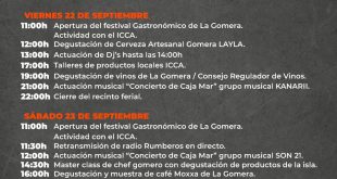 El evento tendrá lugar entre los días 21 y 24 de septiembre, en la Plaza de La Constitución de San Sebastián de La Gomera, con actuaciones musicales, talleres de cocina, degustaciones y catas de productos de la isla El acto inaugural servirá de escenario para reconocer la labor y aportación de seis entidades productoras de la isla al sector El …