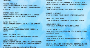 Actos culturales, deportivos, sociales y religiosos protagonizan el mes de julio en esta comarca sureña de La Gomera La comarca sureña gomera de Playa de Santiago en el municipio de Alajeró celebra sus fiestas en honor a Nuestra Señora del Carmen y Santiago Apóstol. Unos festejos que vienen protagonizados por eventos culturales, deportivos, sociales y religiosos, todos ellos sometidos al …