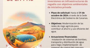 Esta línea de ayuda del Plan Estratégico de la PAC cuenta con una con ficha financiera de 8,7 millones de euros para el periodo 2023-2027 Entre las actuaciones subvencionables, destacan la modernización de las redes de riegos, instalaciones de sistemas de bombeo, y la desalación, entre otras acciones La Consejería de Agricultura, Ganadería, Pesca y Soberanía Alimentaria del Gobierno de …
