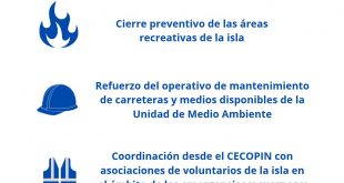 Esta situación también conlleva el cierre preventivo de áreas recreativas, pistas y senderos de la isla Desde la Institución insular se hace un llamamiento a cumplir las restricciones fijadas en la declaración del PEIN Ante cualquier situación de riesgo, ponerse en contacto con el servicio de emergencias, a través del 1-1-2, o el CECOPIN, a través del 922 14 15 …