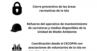 Esta situación conlleva el cierre preventivo de áreas recreativas, pistas y senderos de la isla Desde la Institución insular se hace un llamamiento a cumplir las restricciones fijadas en la declaración del PEIN Ante cualquier situación de riesgo, ponerse en contacto con el servicio de emergencias, a través del 1-1-2, o el CECOPIN, a través del 922 14 15 01 …
